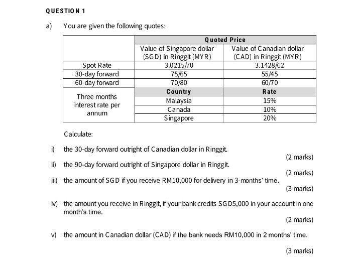 Solved Question 1 A You Are Given The Following Quotes Chegg Com